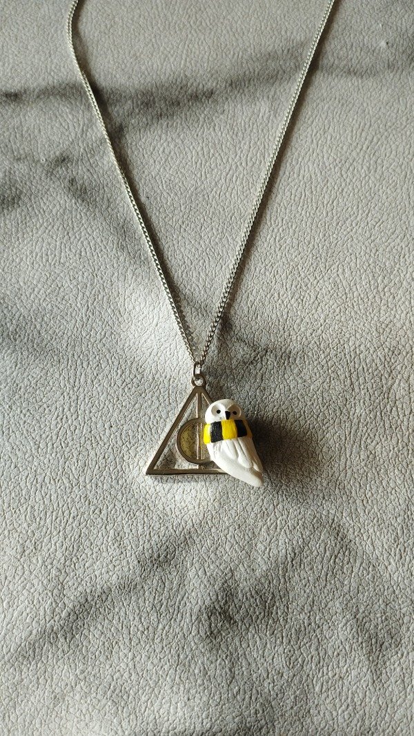 Dije de metal con un diseño realizado en porcelana fría. Tiene detalles en acrílico y barniz. Evitar mojar.