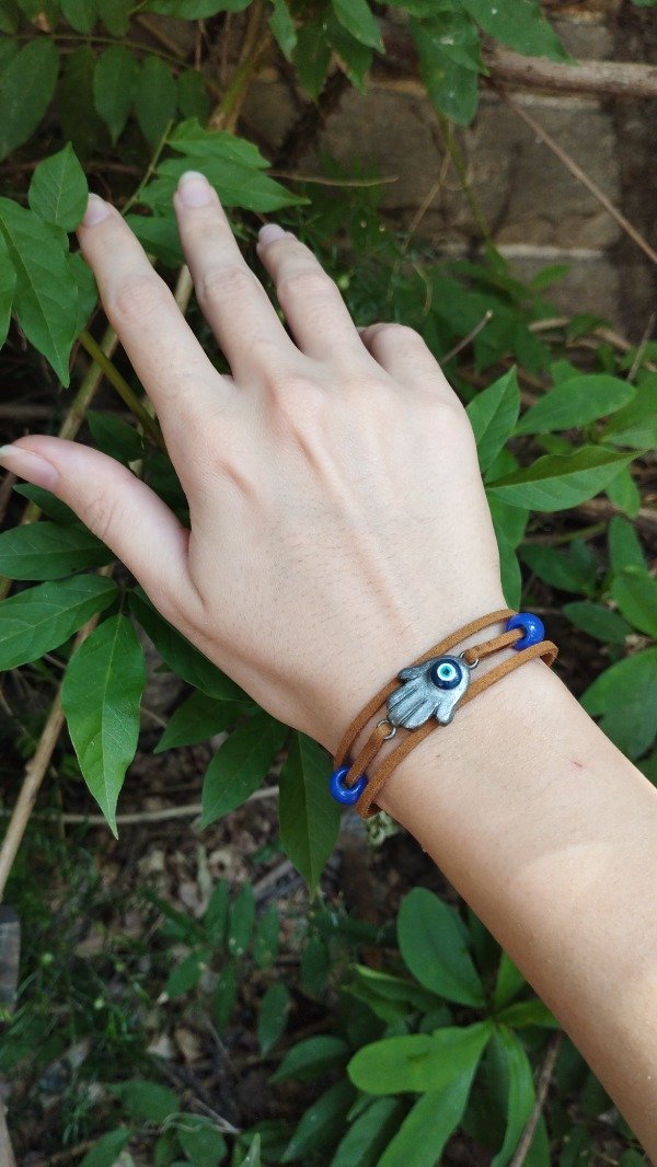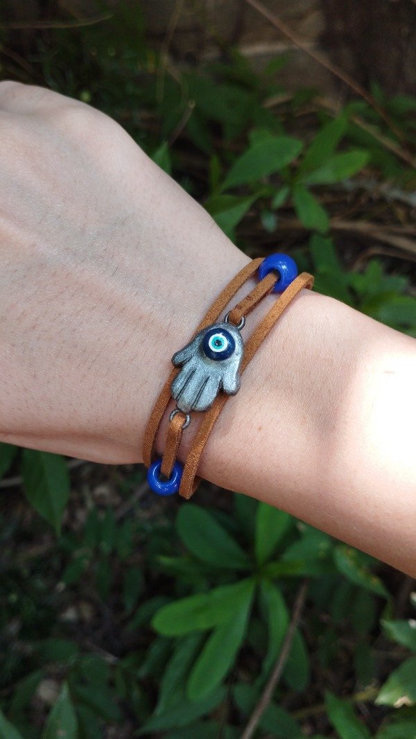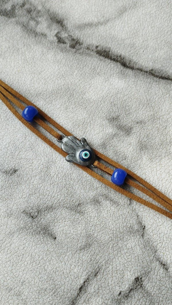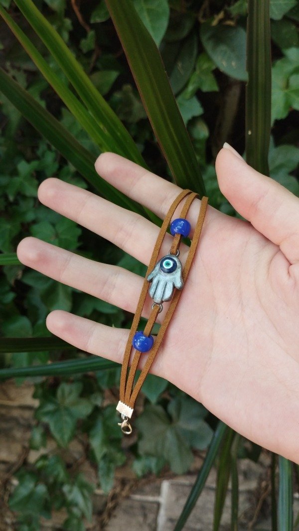 Pulsera que usa Ellie en The last of us parte 2. Con dije de resina y tiras de gamuza.